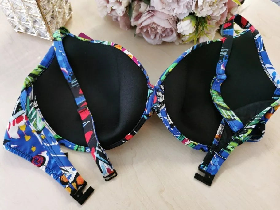 Beldona 40D/40 dydžio dviejų dalių margas maudymosi kostiumėlis SEYCHELLEN. Elastinga medžiaga leis patogiai jaustis, kiekvienai merginai ar moteriai.Liemenėlė su paralono... Skaityti daugiau