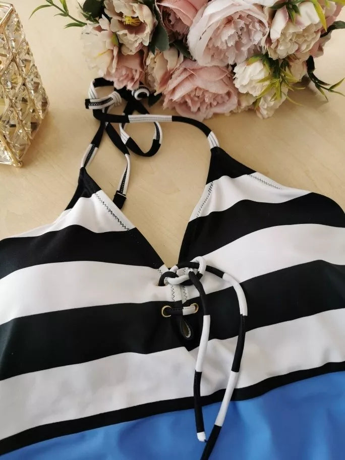 bpc bonprix collection mėlynos spalvos vientisas maudymosi kostiumėlis RAINBOW911487