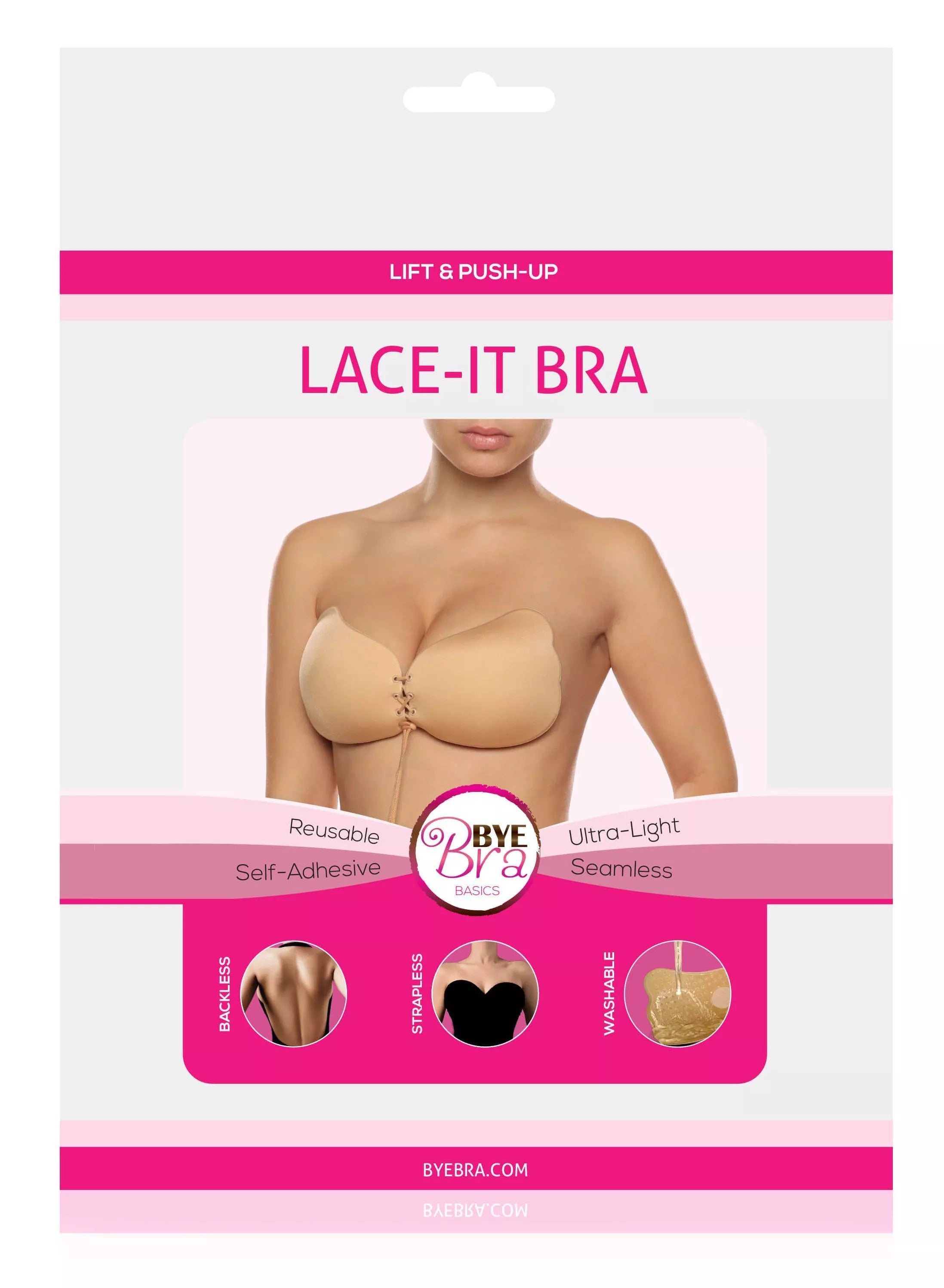 Bye Bra LACE-IT silikoninė liemenelė pakelia ir formuoja krūtinę yra nepastebima vilkint lengvus vasariškus rūbus. Silikoninė liemnėlė lengvai prisitvirtina, raišteliai tarp kaušelių leidžia idealiai parinkti dydį.
