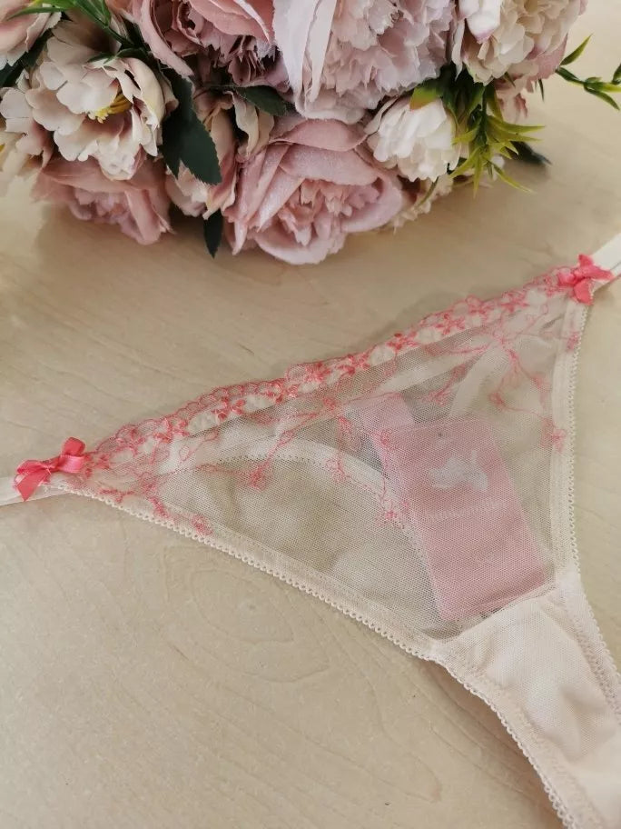 Hunkemoller XL(42) dydžio persiko spalvos stringai Peach Nectar 112651005.Kelnaitės dekoruotos neriniais bei estetiniu kaspinėliu.Sudėtis - 80% poliamidas,4% poliesterio ,3% elastanas... Skaityti daugiau