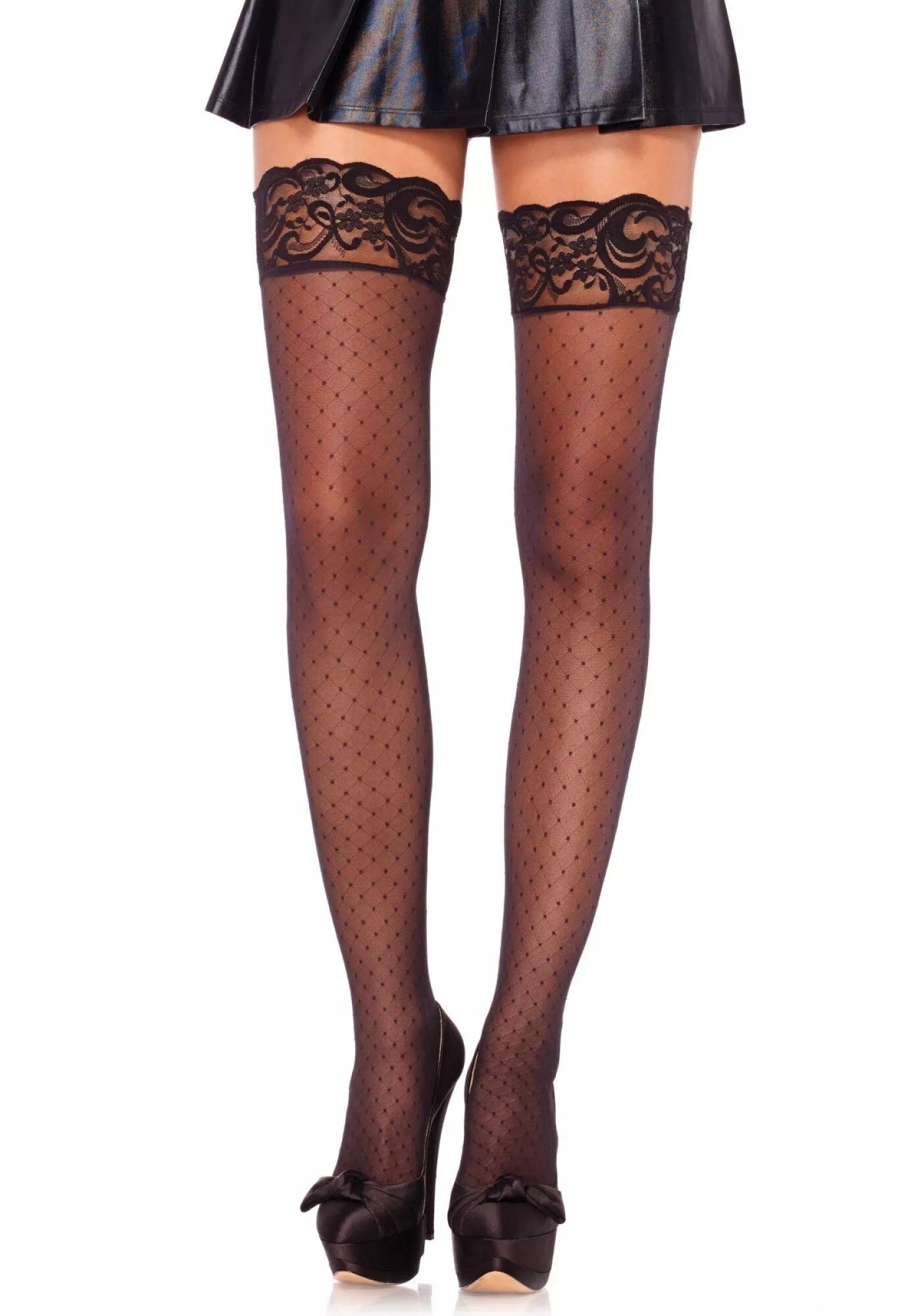 Leg Avenue seksualios juodos Diamand Sheer kojinės Stay Up