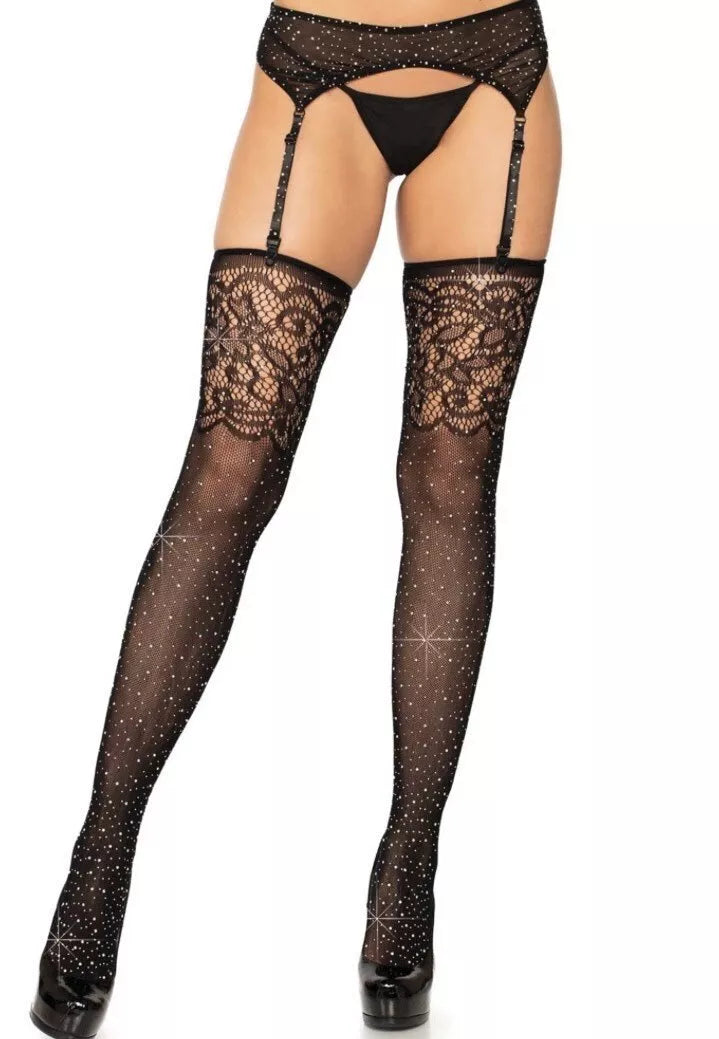 Leg Avenue seksualios juodos kojinės su blizgučiais