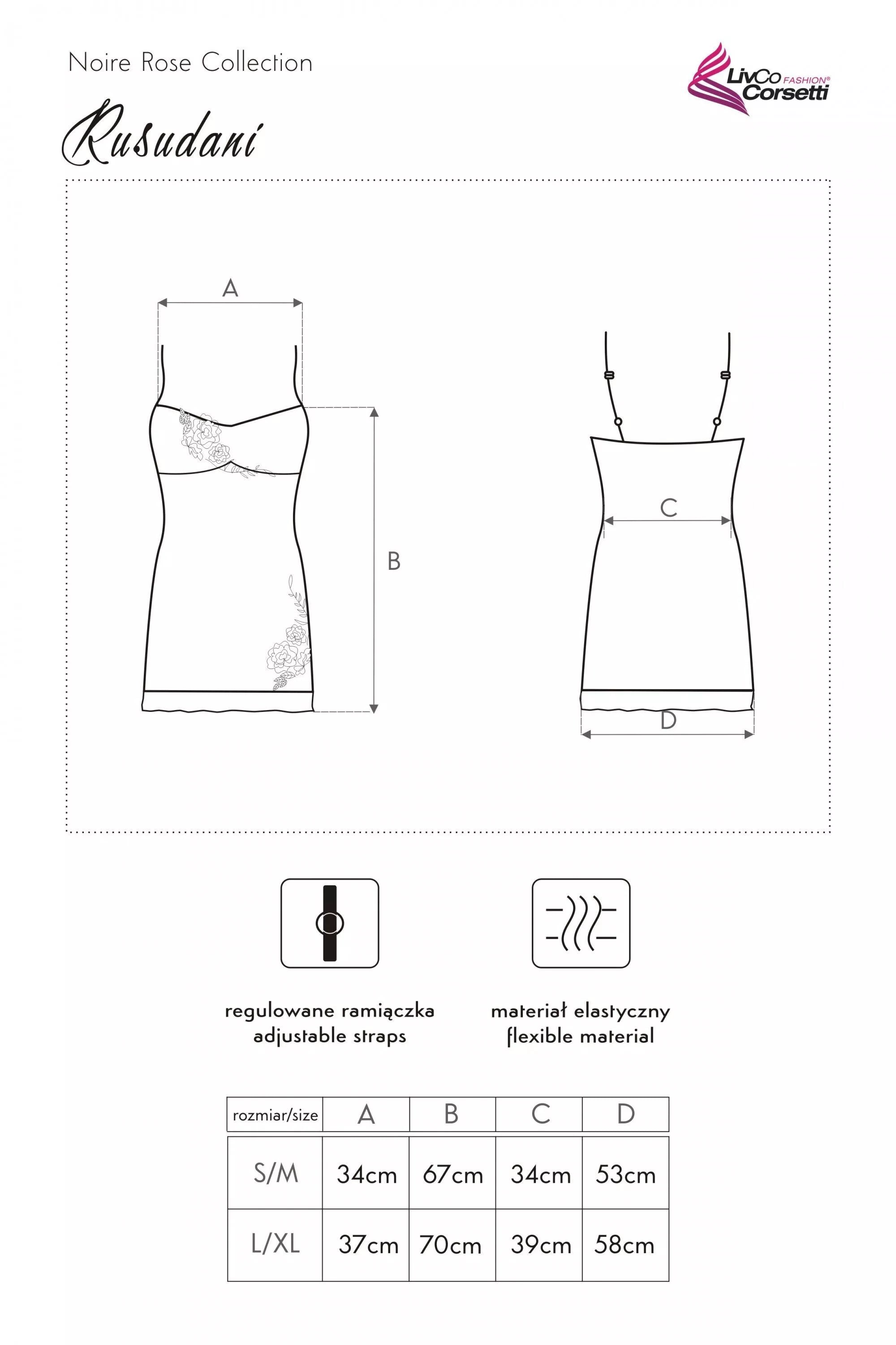 LivCo juodi naktinukai Rusudani ant petnešėlių dekoruoti aukso spalvos neriniais. Sudėtis 92% poliesteris ir 8% elastanas. Švelni ir tampri medžiaga... Skaityti daugiau