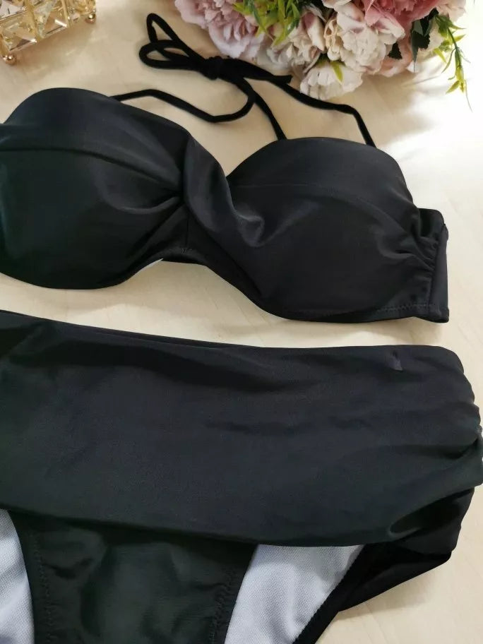 M(38) dydžio juodos spalvos dviejų dalių maudymosi kostiumėlis BLACK. Liemnėlė su push-up pakietinimu,su lankeliais.Nugaroje susegama,petnešėlės ilgis reguliuojasi rišant ant kaklo.Petnešėles... Skaityti daugiau