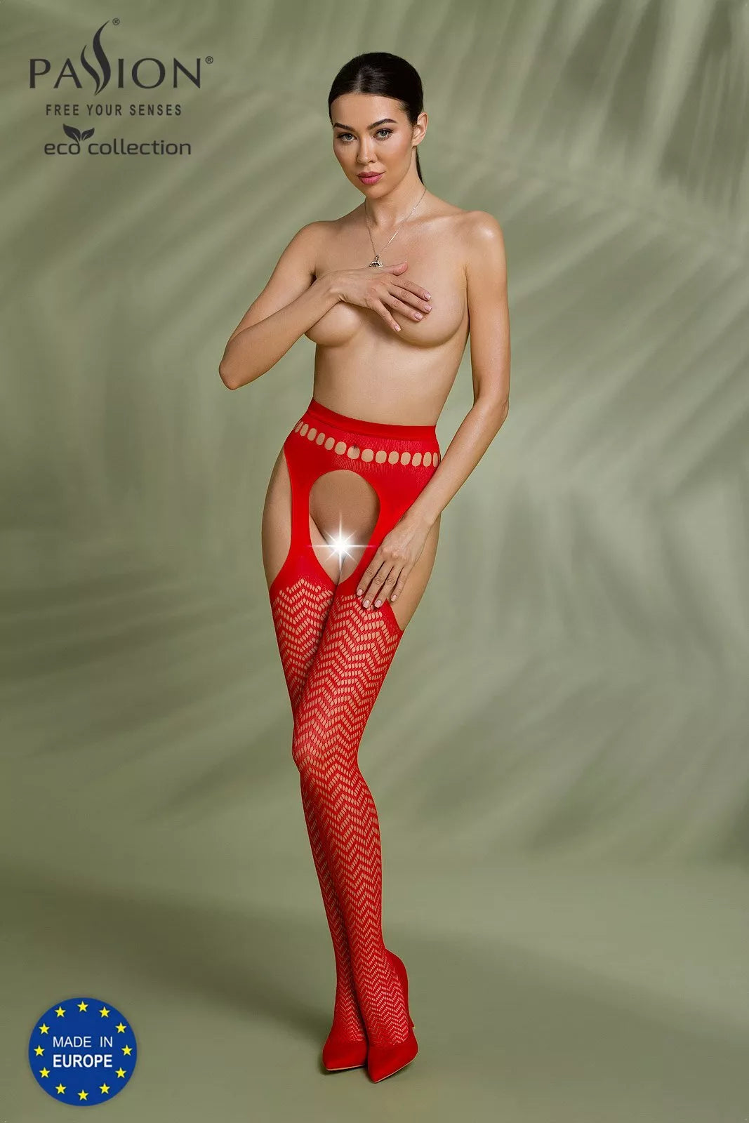 Nepaprastai seksualios raudonos pėdkelnės ECO S002 pagamintos iš antrinių žaliavų, be rankovių, su iškirpte tarpukojyje, dekoruotos raštais. Vienas universalus dydis.