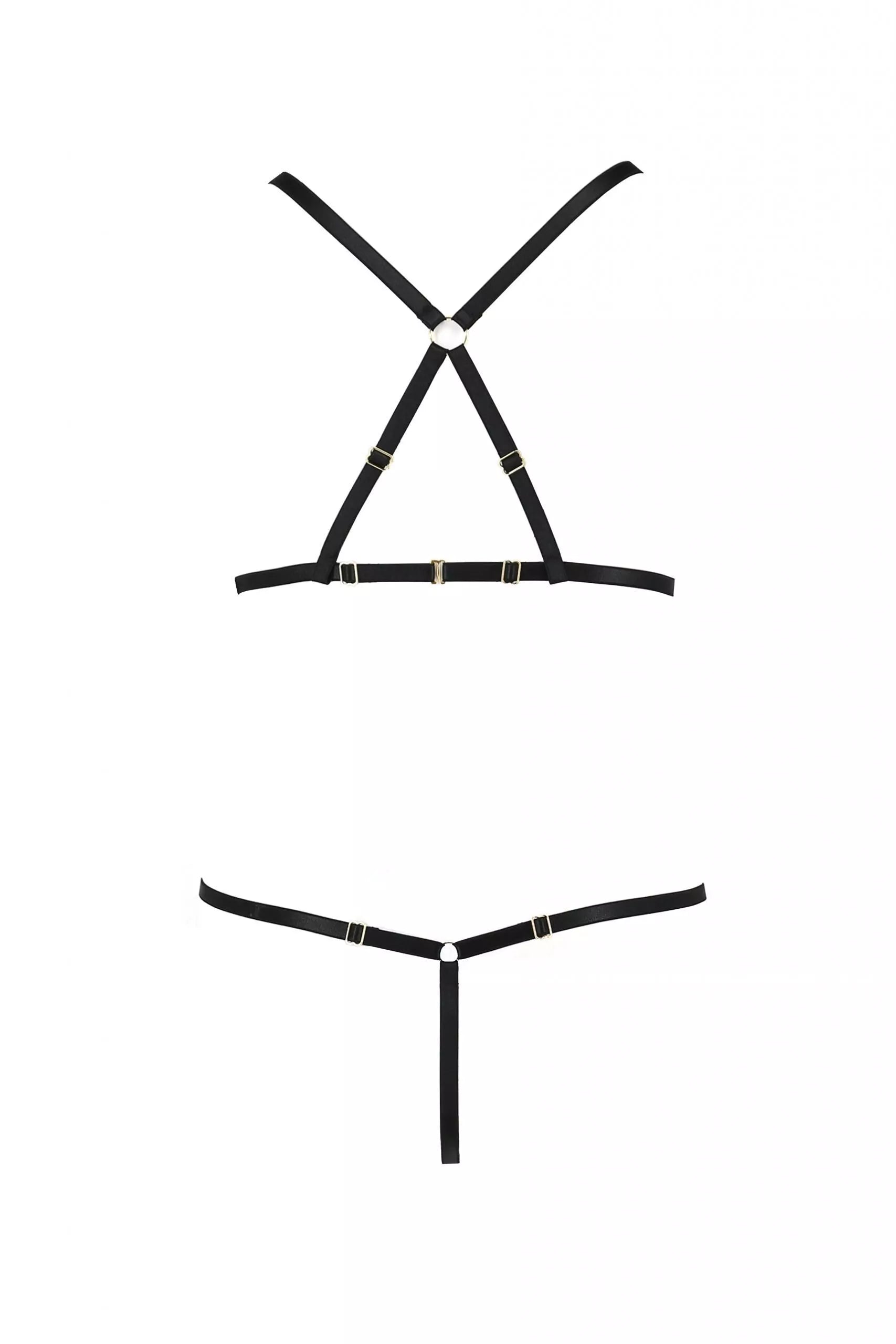 Passion seksualūs atviras komplektėlis ARMANDA. Erotiškas ir gundantis juodas komplektėlis pasiūtas iš reguliuojamo ilgio juodų juostelių, Devil kolekcija. Komplektėlyje liemenllė... Skaityti daugiau
