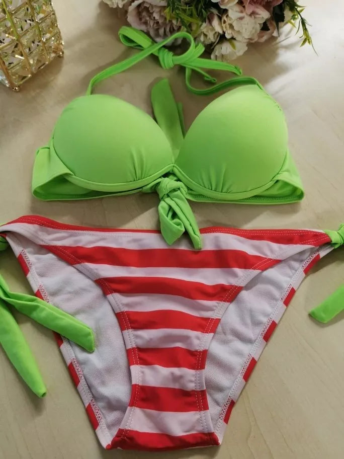 S(36) M(38) dydžio margas dviejų dalių maudymosi kostiumėlis D3016