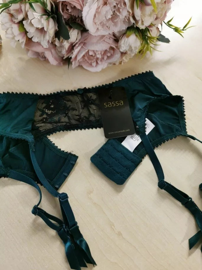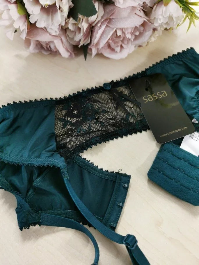 Sassa 36(S) dydžio smaragdo spalvos kojinių diržas Sassa 38209. Kojinių diržas dekoruotas neriniais bei estetiniu kaspinėliu su rožyte,nugaroje susegamas trijose... Skaityti daugiau