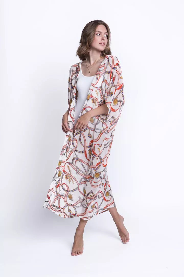 Dar hipių laikais išpopuliarėjusi ir visiems gerai pažįstama meilės ir taikos sklaida niekur neišblėso – paprasčiausiai, ji užgimė nauju, novatorišku ir stilingu kimono pavidalu. Šis lengvas ir išskirtinis LOVE&PEACE kimono – tai elegantiškai vėjo gūsiams pasiduodantis apdaras, sukursiantis paslaptingumo įspūdį ir leisiantis į madą pažvelgti kitu, kosmopolitiškesniu kampu.