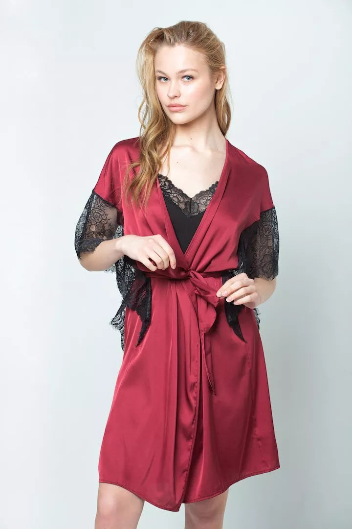 ShaSha bordo spalvos chalatas su šilku BERGERNIA