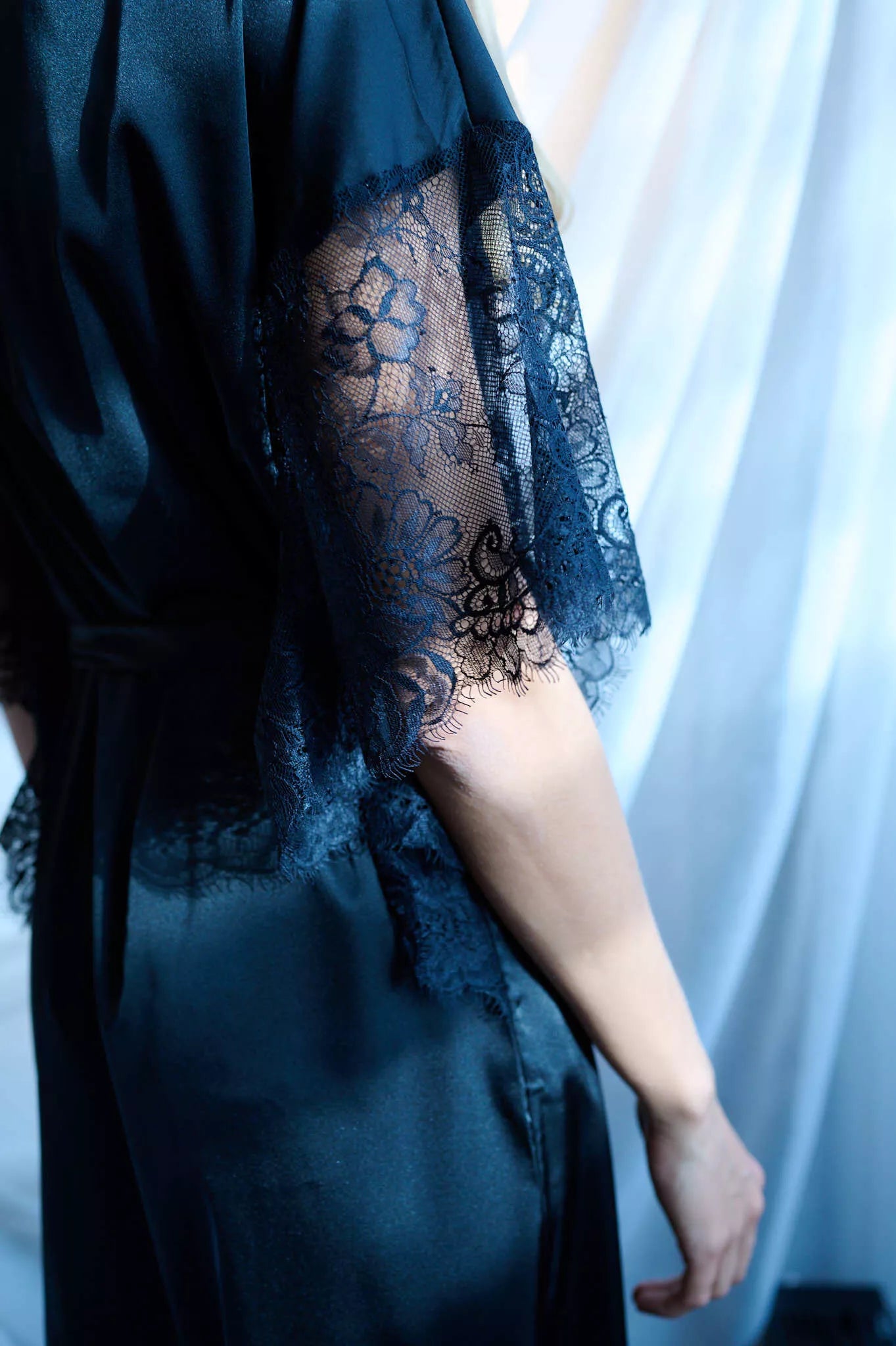 ShaSha juodos spalvos chalatas su šilku BERGERNIA