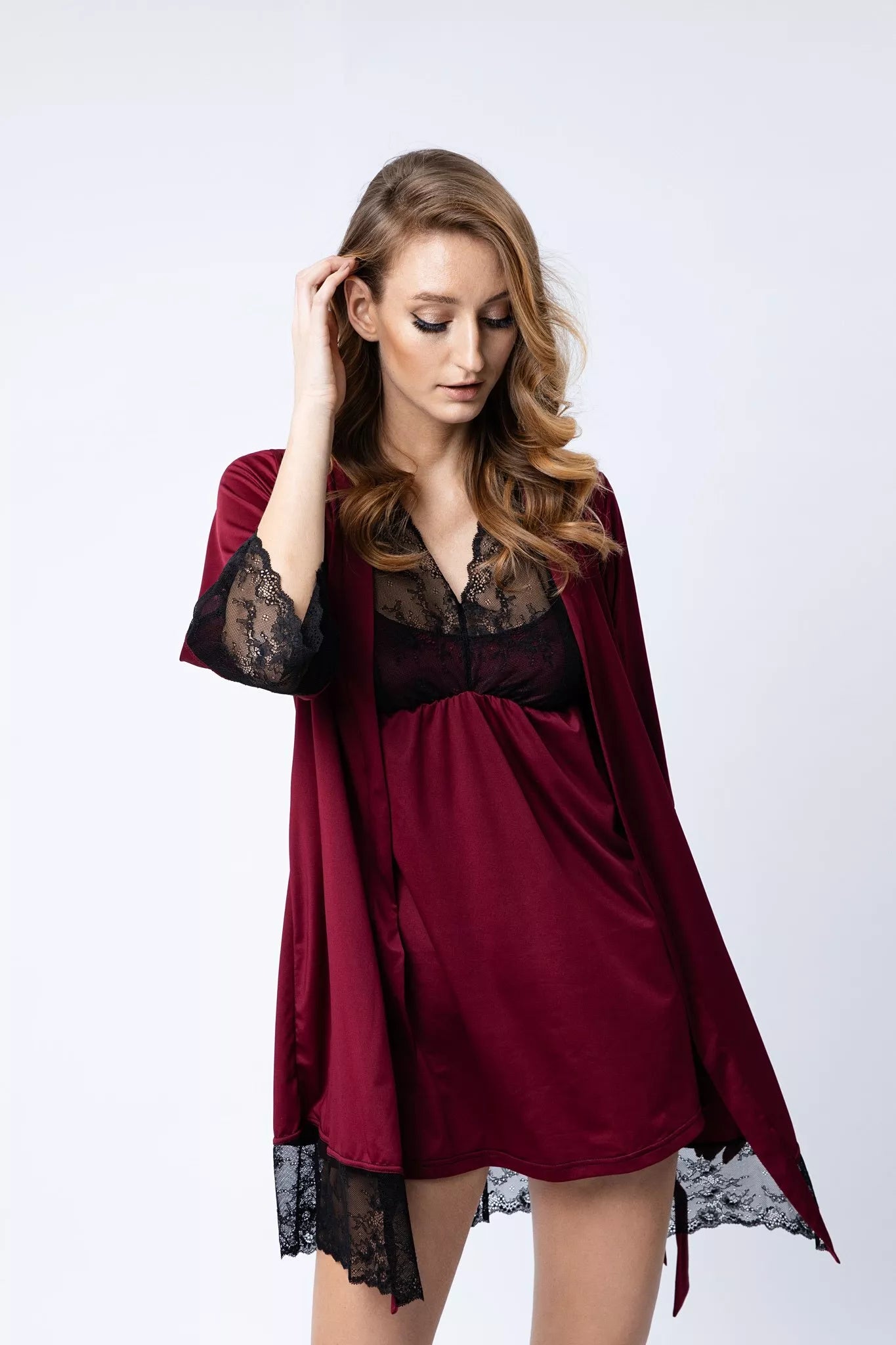 ShaSha nėriniais dekoruotas bordo 2 dalių naktinukų komplektas DAISY