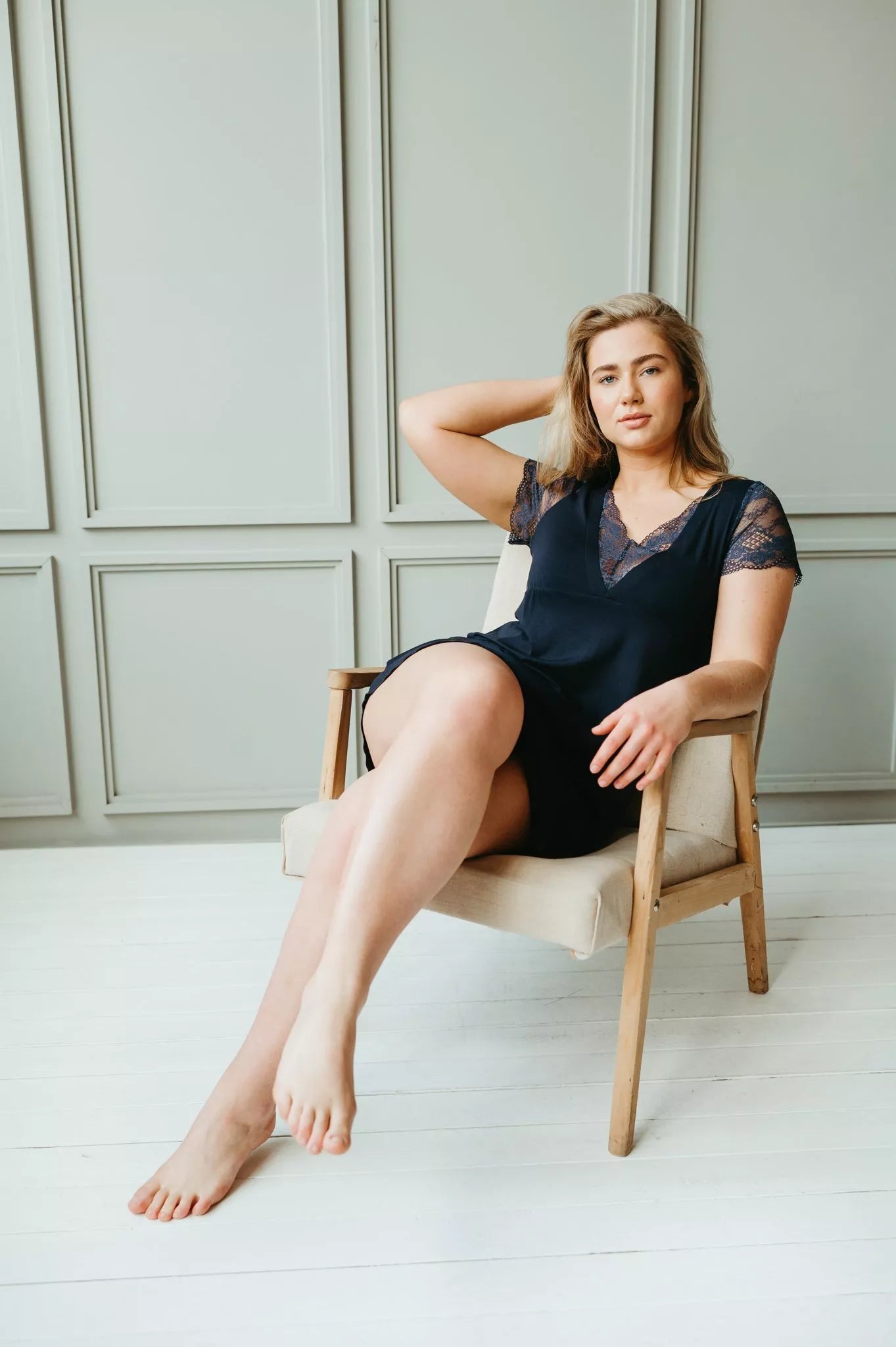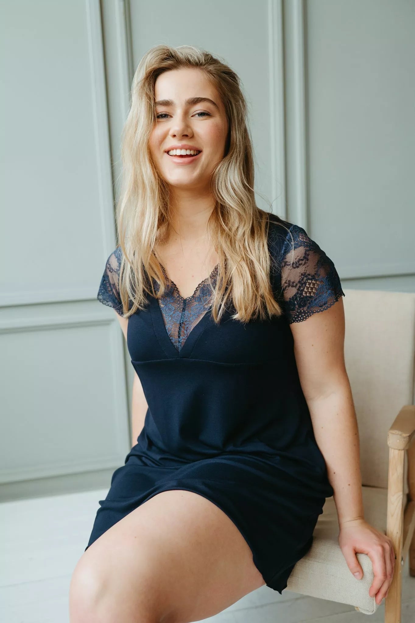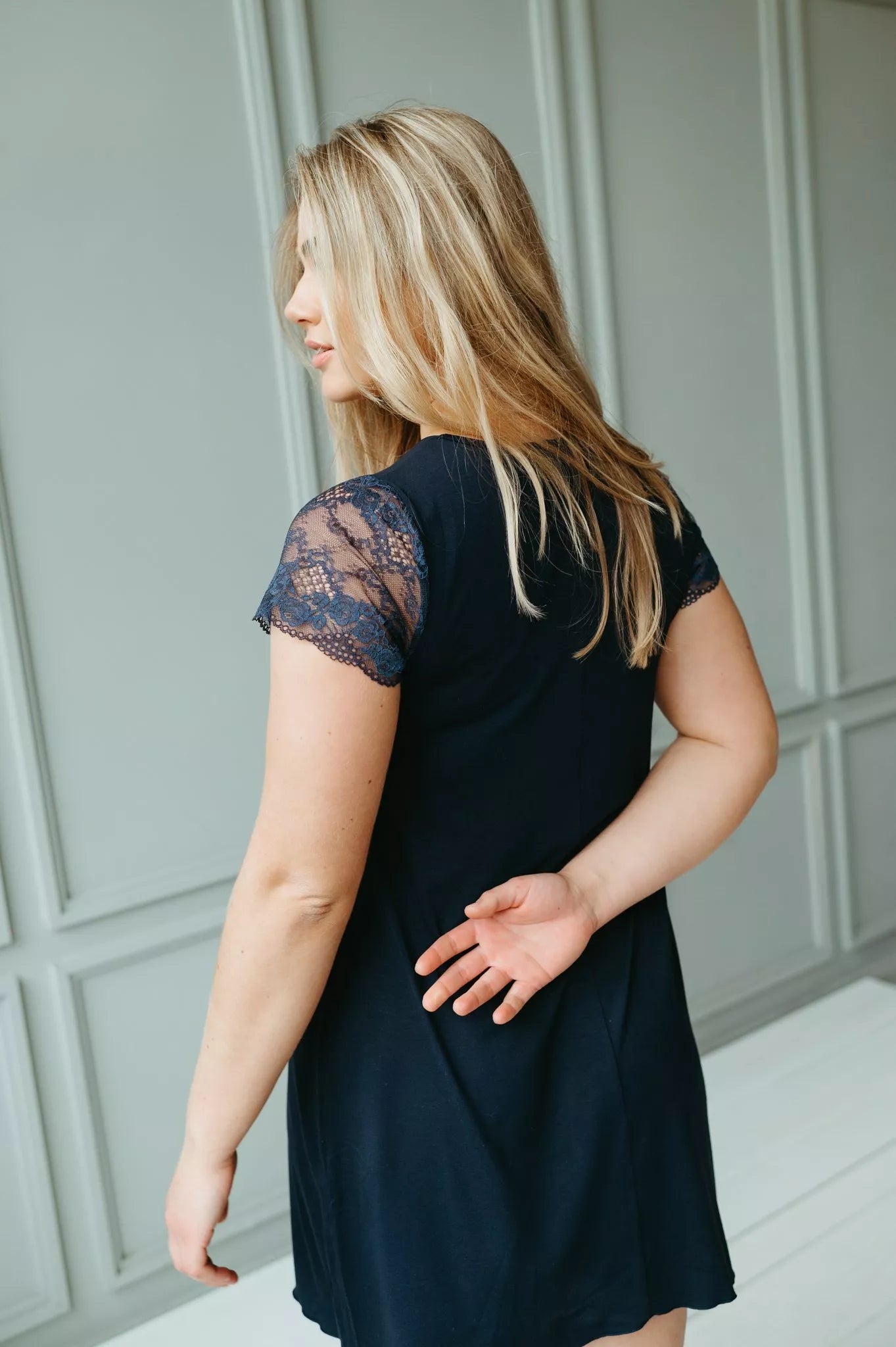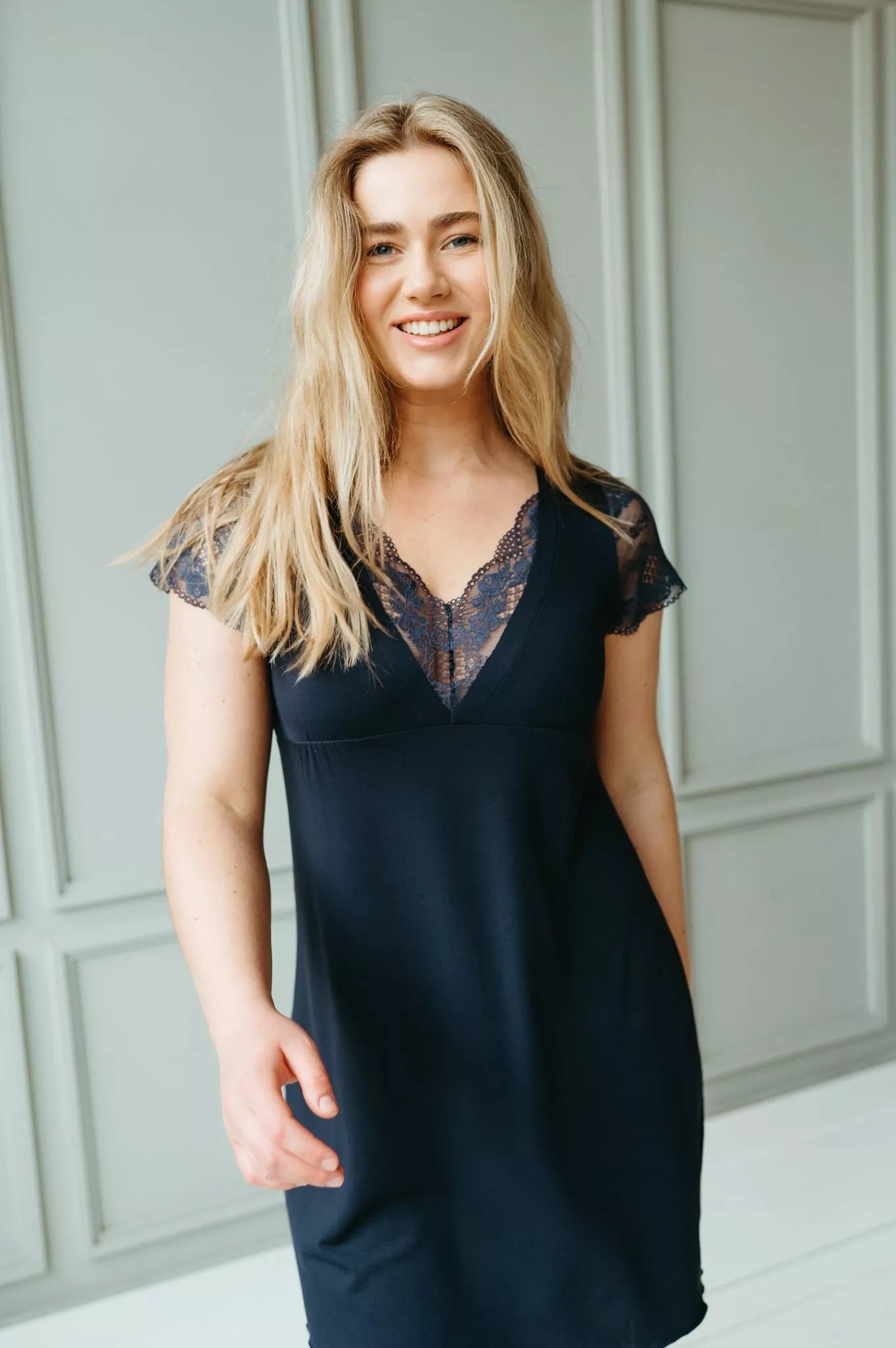 ShaSha viskoziniai tamsiai mėlynos spalvos naktinukai su nėriniais ASTER