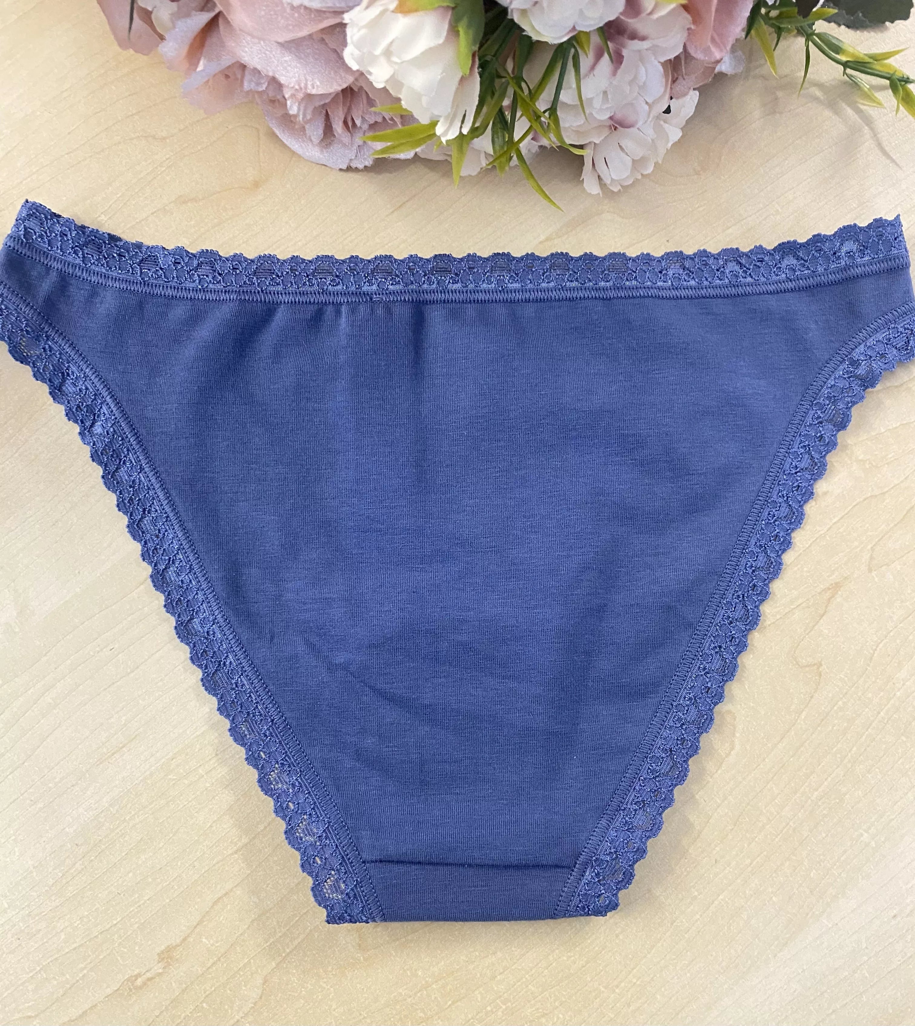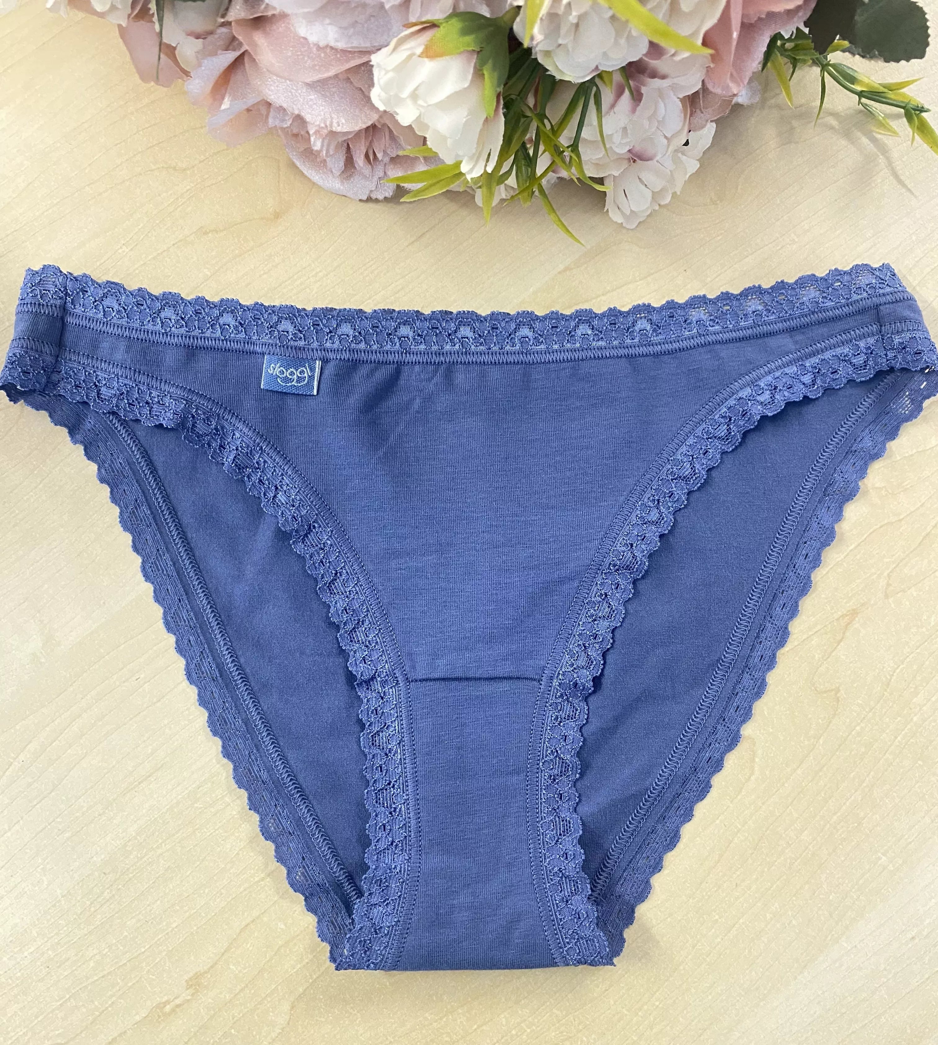 Sloggi 38(M) dydžio melsvos spalvos kelnaitės Weekend Tanga C3P. Kelnaičių krašteliai dekoruoti nėriniais. Sudėtis 96% medvilnės, 4% elastano. Gamintojas Triumph.Spalva... Skaityti daugiau