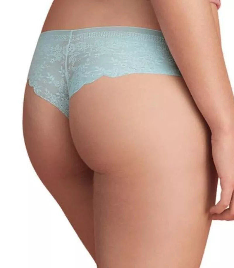 Sloggi XS(34) dydžio melsvos spalvos minkštos gifiūrinės kelnaitės Zero Lace Hipstring