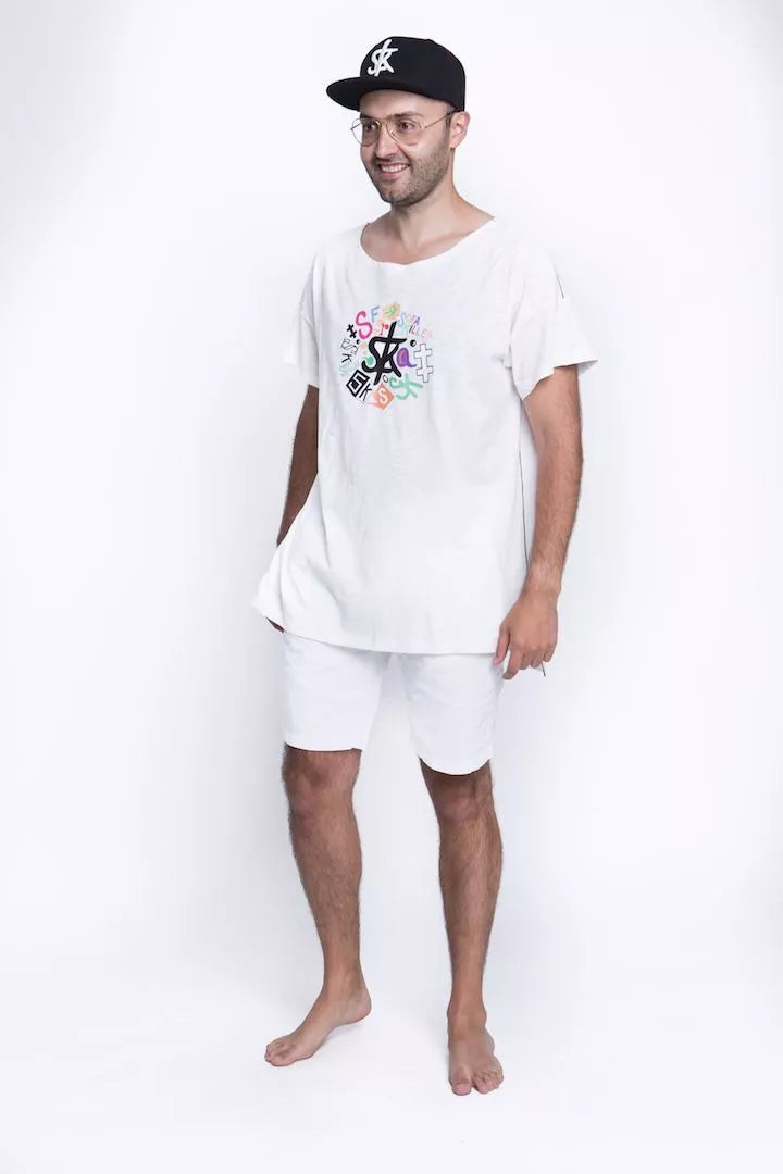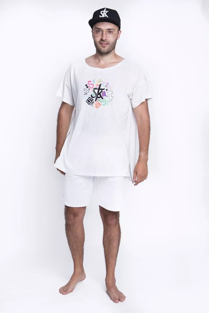 Sofa Killer balti medvilniniai marškinėliai su marga aplikacija ir juoda juostele šonuose. Audinys natūralus, minkštas, kaklas platus ir atviras, nugara... Skaityti daugiau
