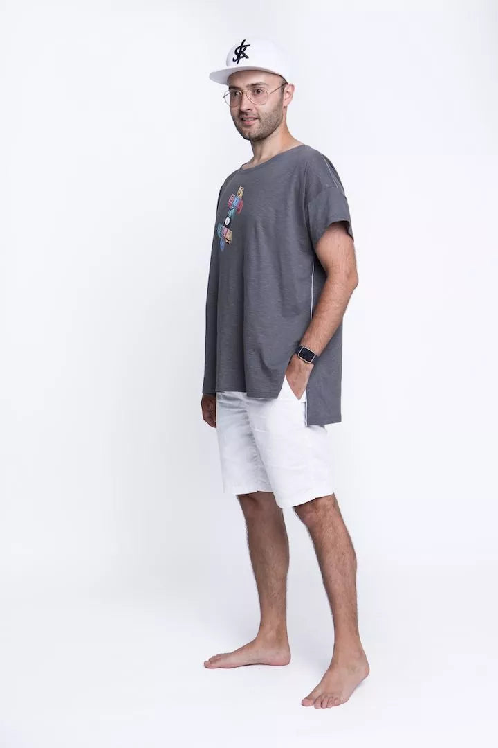 Sofa Killer pilki medvilniniai marškinėliai su dvigubo kryžiaus kubelių aplikacija ir balta juostele šonuose. Audinys natūralus, minkštas, kaklas platus ir... Skaityti daugiau