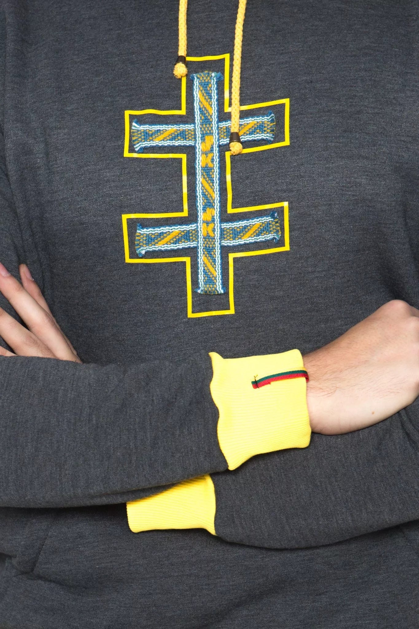 Sofa Killer grafito spalvos džemperis su tautinėm juostom