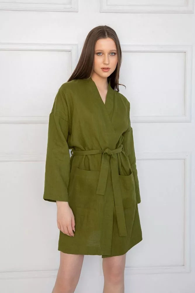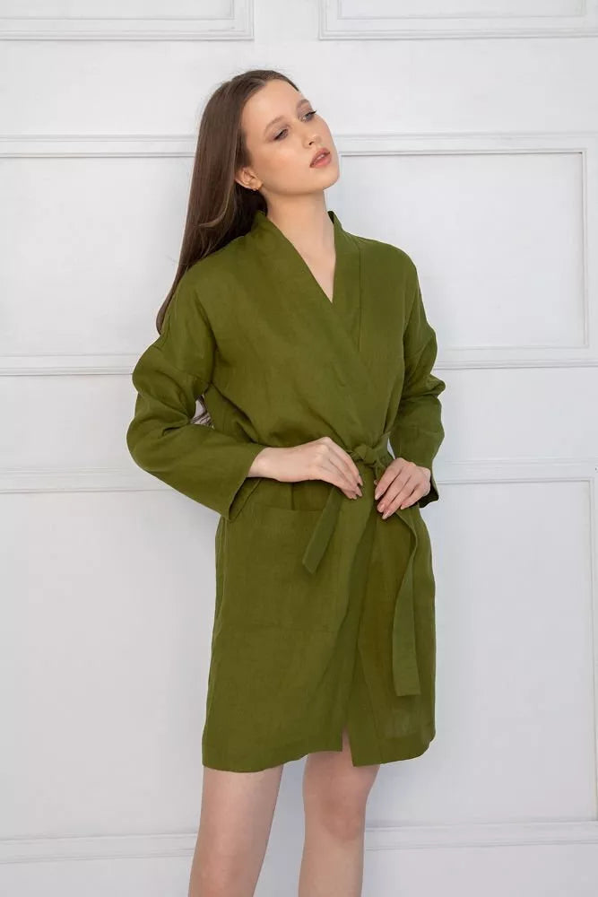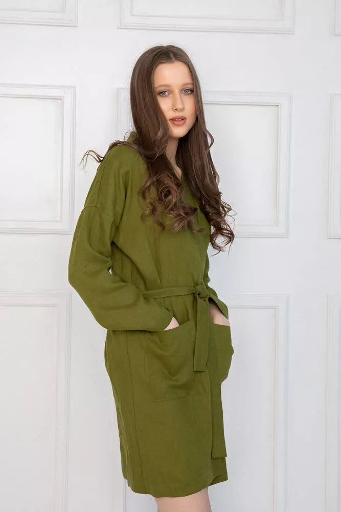 Sofa Killer samanų spalvos lininis chalatas