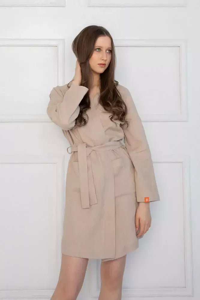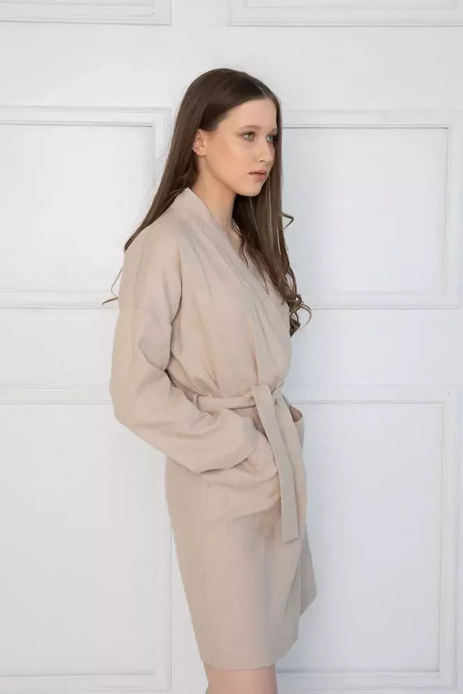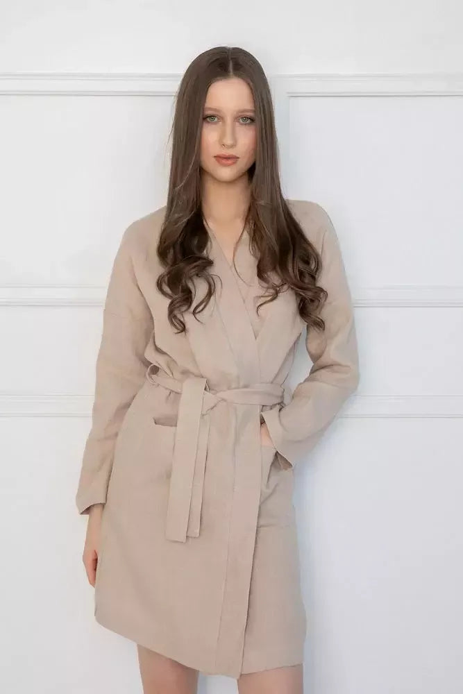 Sofa Killer smėlio spalvos lininis chalatas, šonuose kišenės. Minkštinto lino medžiaga švelni ir jauki, sukuria įpatingą lengvumo jausmą ir norą... Skaityti daugiau