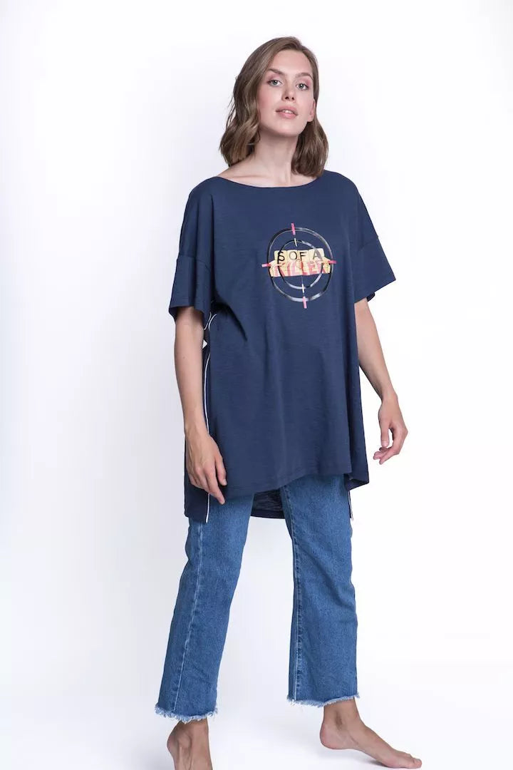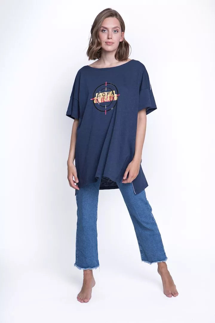 Sofa Killer tamsiai mėlyni medvilniniai marškinėliai su aplikacija Target
