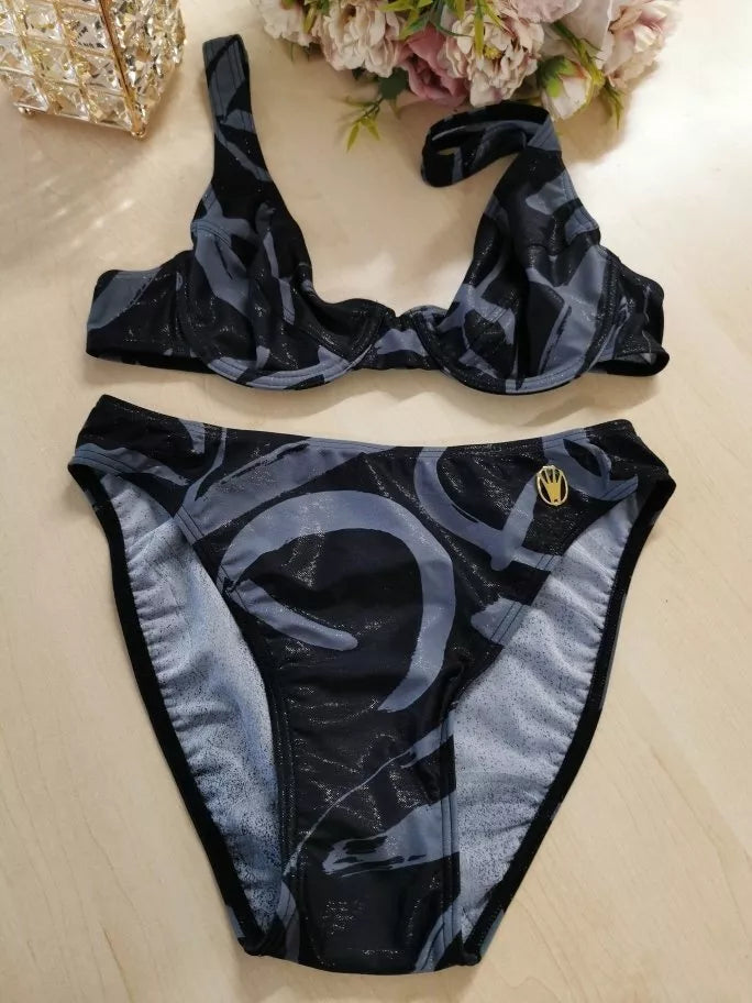 Triumph 38 dydžio dviejų dalių juodos spalvos margas maudymosi kostiumėlis Lillyets ZTR 12052