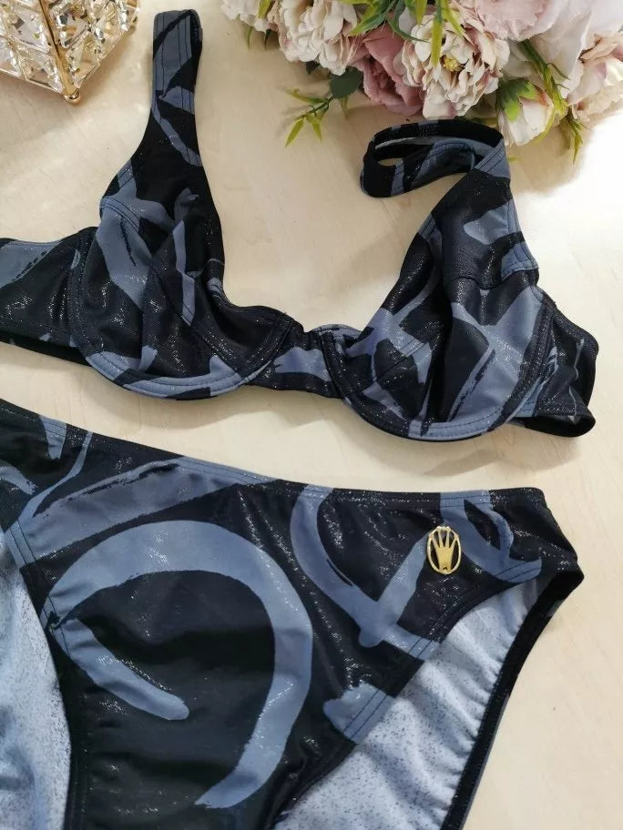 Triumph 38 dydžio dviejų dalių juodos spalvos margas maudymosi kostiumėlis Lillyets ZTR 12052. Elastinga medžiaga leis patogiai jaustis, kiekvienai merginai... Skaityti daugiau