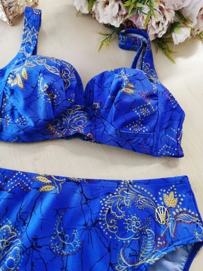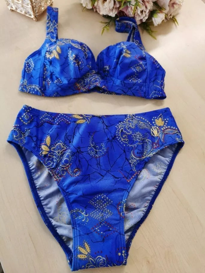 Triumph 38 dydžio dviejų dalių mėlynas margas maudymosi kostiumėlis Shape-ZT-13062. Elastinga medžiaga leis patogiai jaustis, kiekvienai merginai ar moteriai. Liemenėlės... Skaityti daugiau