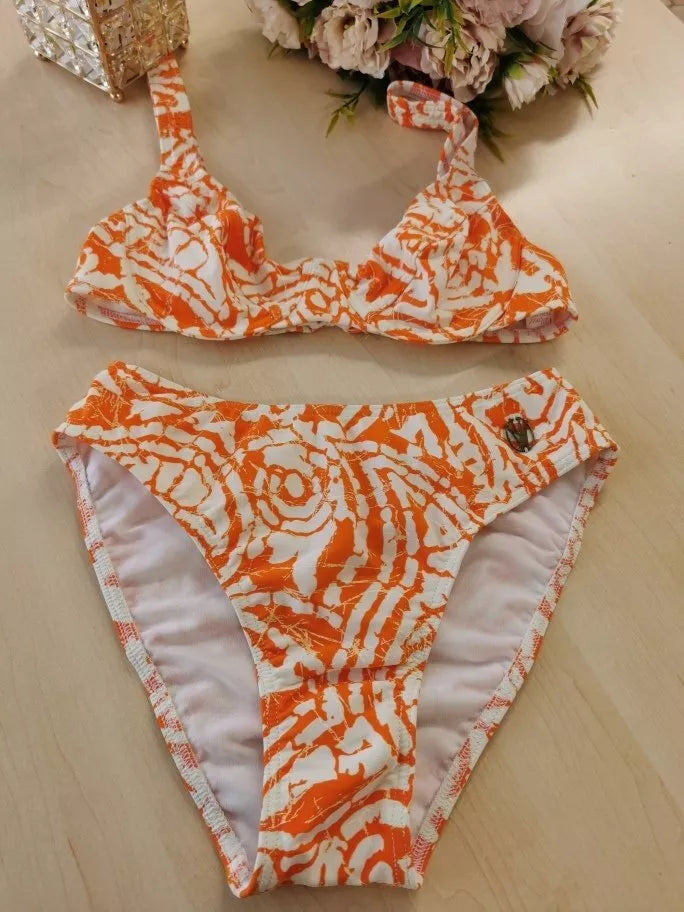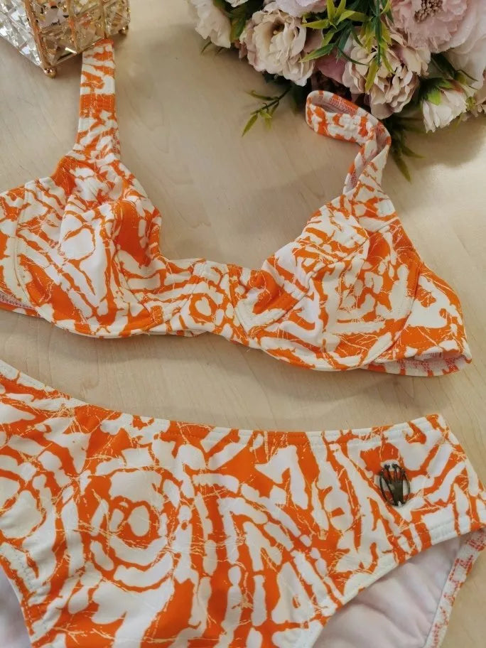 Triumph 38 dydžio dviejų dalių oranžinės spalvos margas maudymosi kostiumėlis Lillyets 32042 ZTR