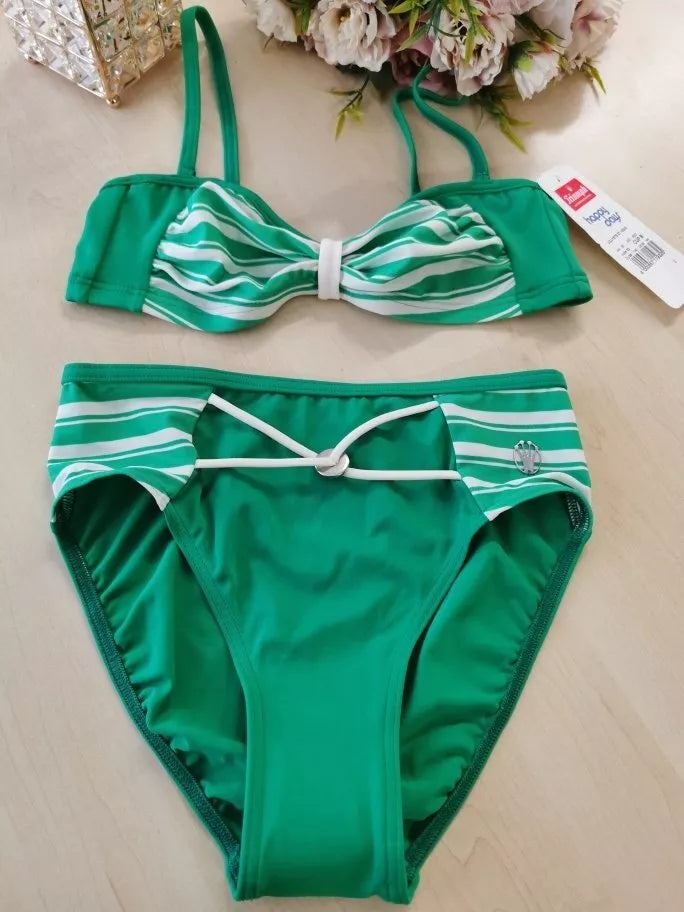 Triumph 38 dydžio dviejų dalių žalsvos spalvos margas maudymosi kostiumėlis Lillyets ZT 12023. Elastinga medžiaga leis patogiai jaustis, kiekvienai merginai... Skaityti daugiau