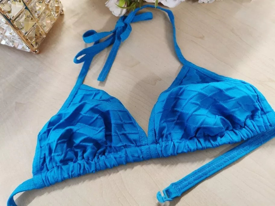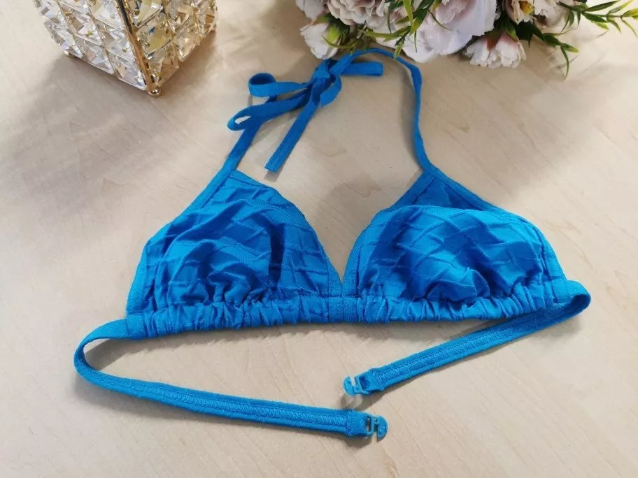 Triumph 38 dydžio melsva maudymuko liemenėlė Lillyets COT 92101, susegama nugaroje.Liemenėlė be pakietinimo,tik audinys,be lankelių.Petnešėlių ilgis neguliuojasi rišant ant kaklo.Elastinga... Skaityti daugiau