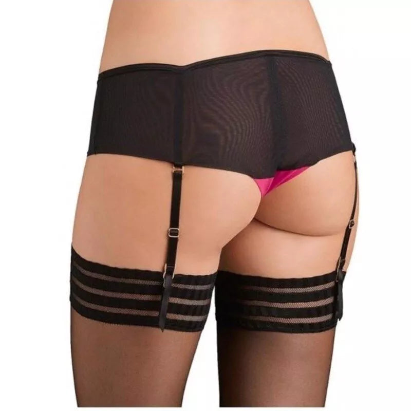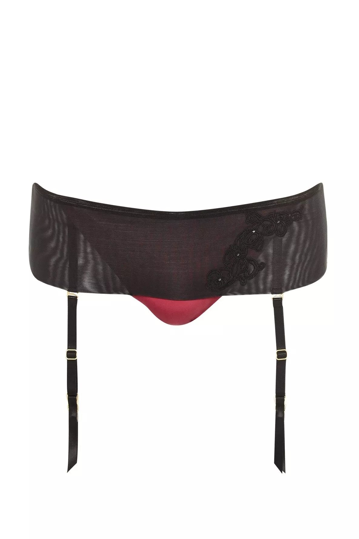 Triumph 38(M) 40(L) bordo ir juodos spalvos kelnaitės + kojinių diržas Scarlet Essence Hipster. Kelnaitės dekoruotos neriniais.Prie kelnaičių segasi kojinių... Skaityti daugiau