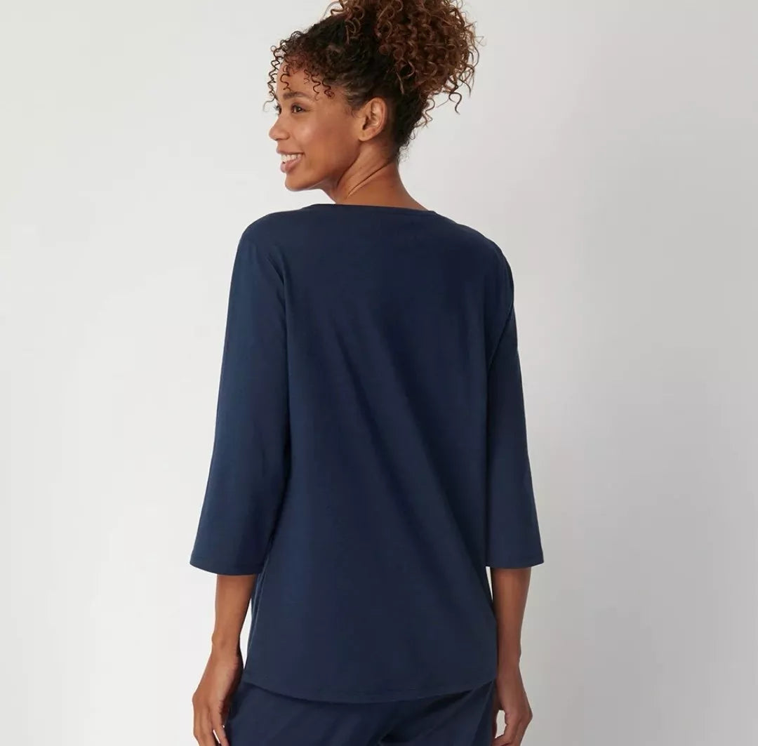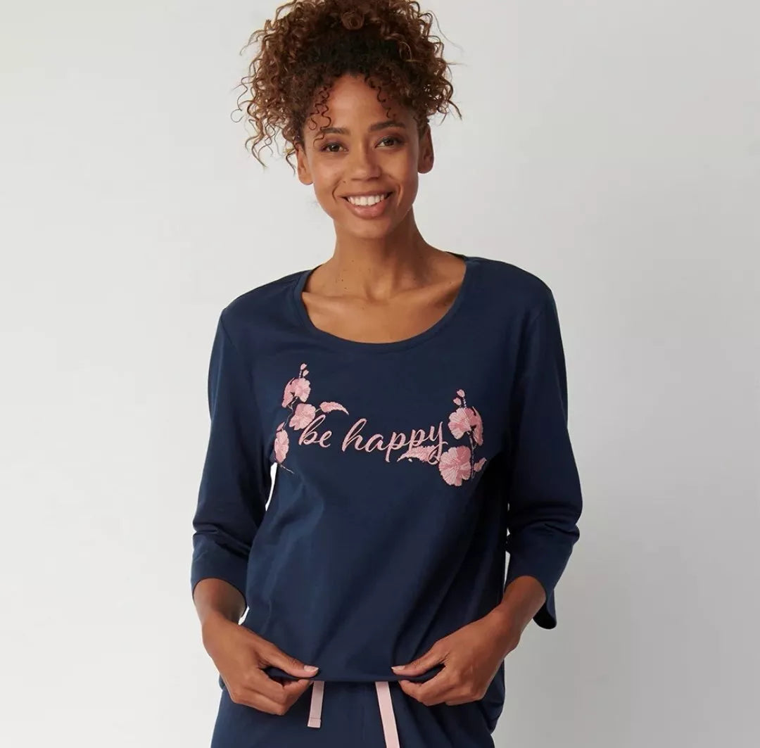 Triumph 40(L) dydžio moteriška mėlynos spalvos dviejų dalių medvilninė pižama Mix Match TOP 3/4 SLEEVES