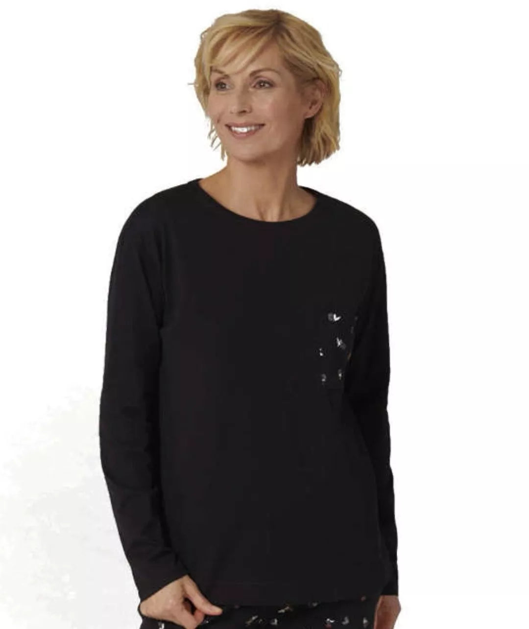 Triumph 44(XXL) 38(M) dydžio juodos spalvos moteriška medvilninė miego palaidinė Mix Match LSL TOP 02