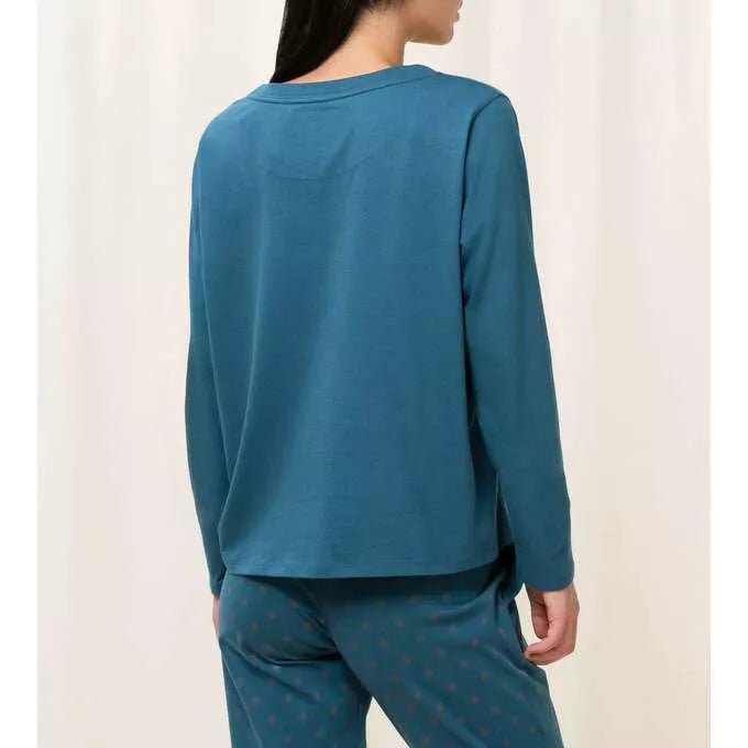 Triumph 44(XXL) 46(XXXL) dydžio melsvos spalvos moteriška medvilninė miego palaidinė Mix Match LSL TOP Chest Pocket 01