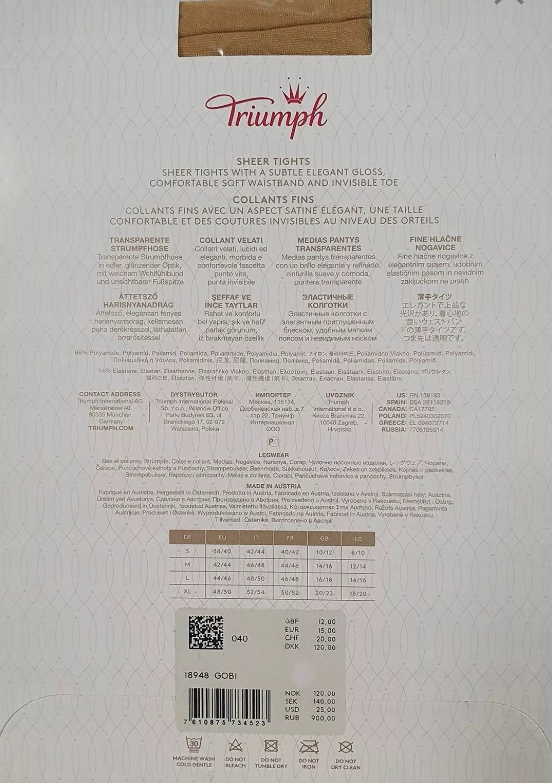 Triumph M L dydžio 15DEN kūno spalvos pėdkelnės 18948 Gobi.Moteriškos pėdkelnės su patogiu juosmeniu.Sudėtis - 86% poliamido ir 14% elastano.Gamintojas... Skaityti daugiau