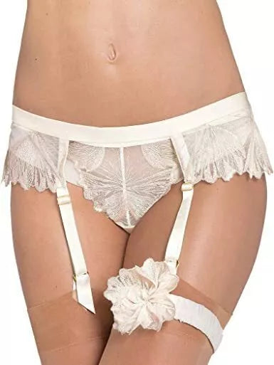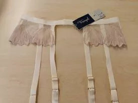 Triumph M(38) dydžio kreminės spalvos dekoruotas aksominiais neriniais kojinių diržas Splendid Essence S