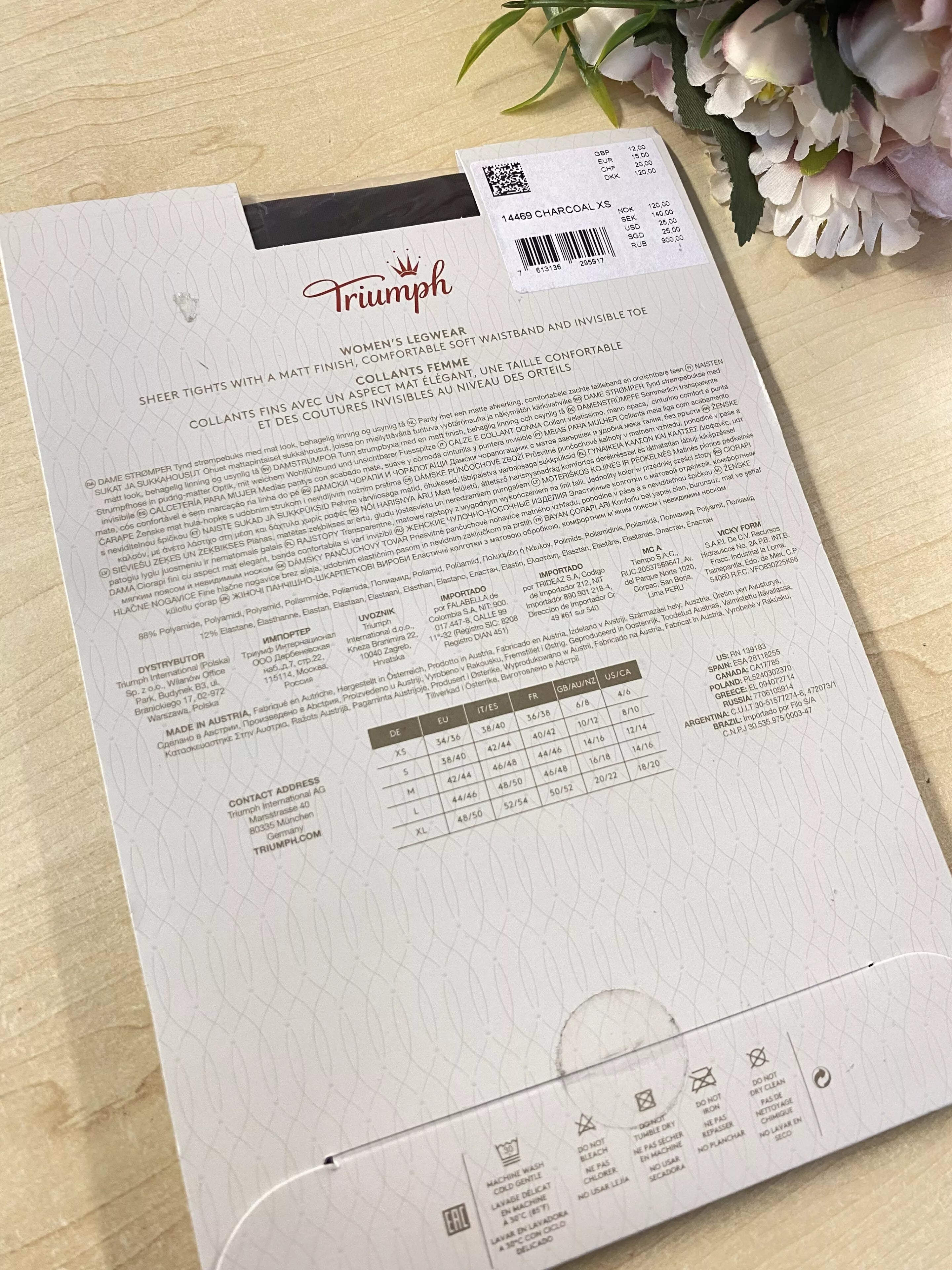 Triumph XS dydžio 15DEN juodos spalvos pėdkelnės 14469. Moteriškos matinės pėdkelnės su patogiu juosmeniu. Sudėtis - 88% poliamido ir 12%... Skaityti daugiau